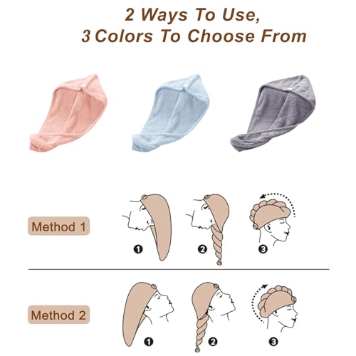 Microfiber Hair Towel for Women: Ideal Christmas Stocking Stuffer for Women, Teen Girls, and Children 3 Pack Drying Wrap Towels Designed for Curly Hair, Anti-Frizz Hair Care Accessory