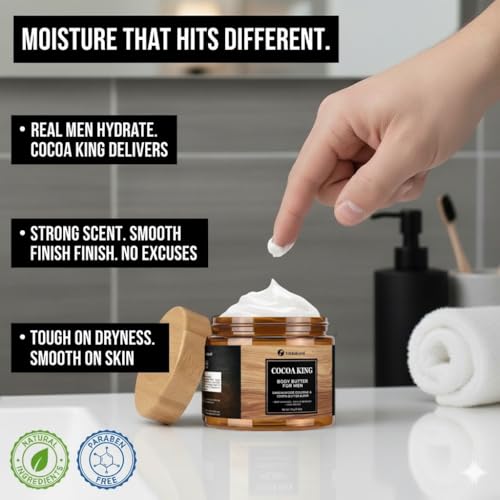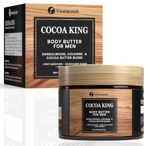 Body Butter for Men- Cocoa King Body Butter – Cocoa butter and Cologne Scent – 5.26 oz Body Cream Blend