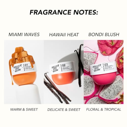 Drench yourself in the heavenly scent of Hawaii Heat moisturizing body butter. Infused with notes of sweet vanilla delicate peony and warming amber, this irresistible fragrance captures the essence of Hawaii’s sun-soaked shores. Deeply nourishing and with a long-lasting dreamy scent that keeps you smelling like tropical bliss all day while evoking endless summer vibes. It’s time to embrace the heat! Holler And Glow is a female-founded innovation obsessed brand, tapping into TikTok generated trends and other social media must haves. We offer a range of skin care accessories, perfect for women and girls looking for a spa day.