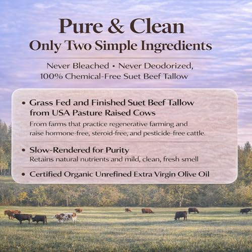 Whipped Beef Tallow for Skin – 100% Grass Fed Suet Beef Tallow Moisturizer for Face, Organic Body Butter, Rosacea, Eczema, Babies, Sensitive Skin (Unscented) 2oz