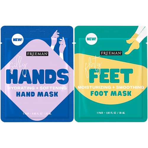 Freeman Flirty Feet Foot Mask & Silky Hands Hand Mask Set – Moisturizing Socks with Coconut Oil & Mint Extract + Hydrating Gloves with Coconut Oil & Rose Extract