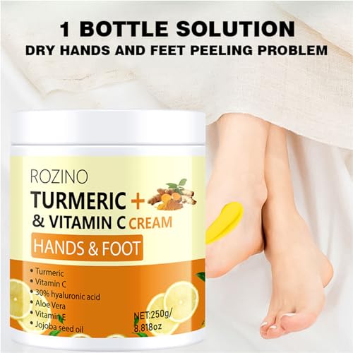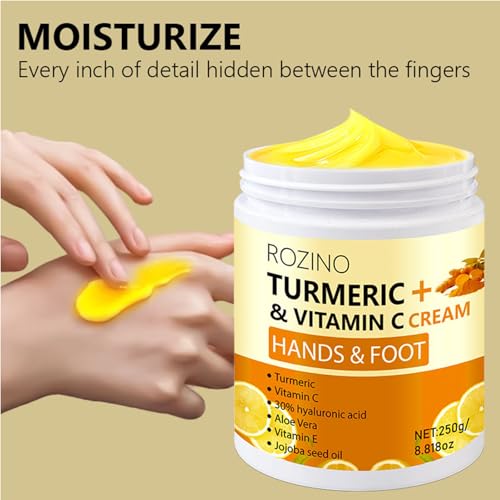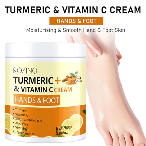 Turmeric & Vitamin C Hand and Foot Cream – Moisturizing Treatment for Dry, Rough Skin – Fast Absorbing, Non-Greasy Formula – Hydrates & Soothes Cracked Heels & Hands (8.8OZ)