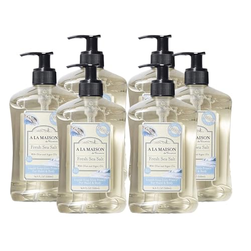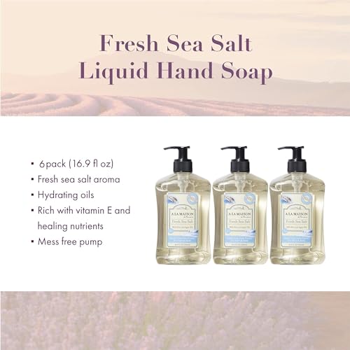 A LA MAISON French Liquid Hand Soap, Fresh Sea Salt – Natural Hand Wash Made with Essential Oils – Biodegradable, Plant-Based, Vegan, Cruelty-Free, Alcohol & Paraben Free (16.9 oz, 6 Pack)