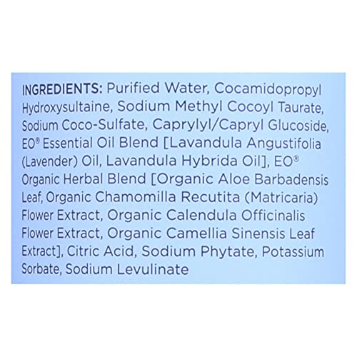 EO Essential Oil liquid hand Soap, French Lavender, plant nutrients are formulated to gently cleanse without drying hands. This coconut oil cleansing complex is one of the most gentle yet effective lathering formulas available. No irritating sodium laurel or Lauretha sulfates. EO Hand Soap is made with a unique combination of pure essential oils and nourishing botanical extracts. Our hand soap gently cleanses without drying your hands, making it ideal for everyday use. As with all EO products, our hand soaps Contain no irritating sodium lauryl/Lauretha sulfates and are made without artificial color or synthetic fragrance.