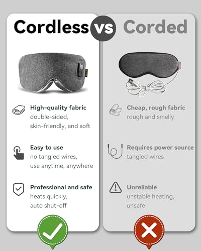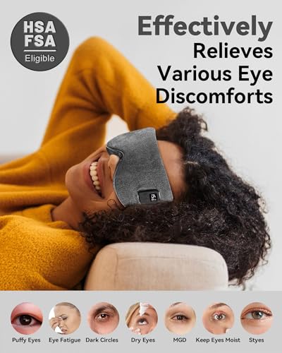 Heated Eye Mask for Dry Eyes: Warm Compress for Digital Tired Eyes, Stye Relief – Cordless, Adjustable Heat & Timer Settings – Airplane/Road Travel, Sleep aid, Office nap Grey