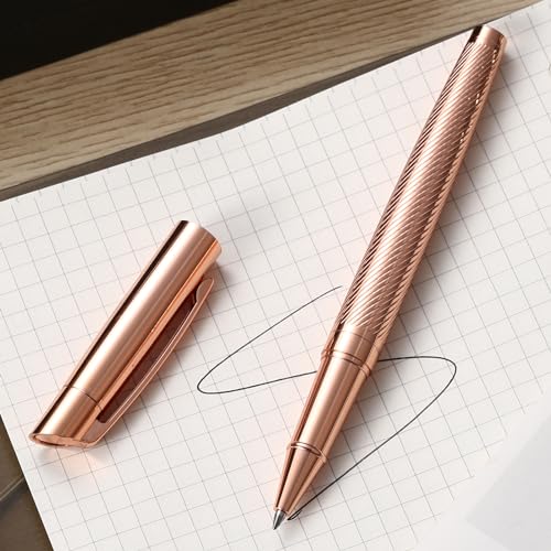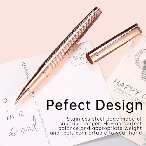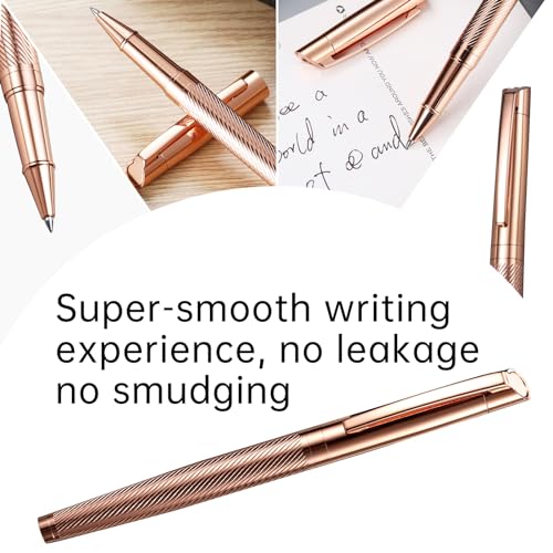 Rollerball Liquid Ink Signature Pens for Women Luxury Box Gel Black Ink Fancy Pen Refillable for Executive Office,Professional,Birthday Nice Gift Penset Rosegold