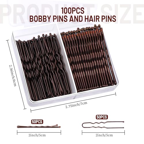 Teenitor 100Pcs Bobby Pins Bobby Pins for Women, Brown Bobby pins Hair Pins, Hair Pins for Women 2inch