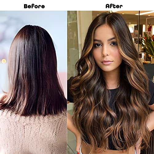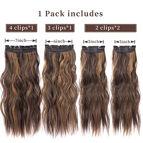 4Pcs Clip in Hair Extensions, 20 Inches Long Wavy Synthetic Brown Hair Extensions Clip in, for Women and Girls (Color: Dark Brown with Light Brown Highlights)
