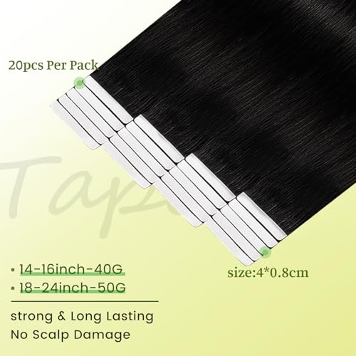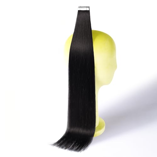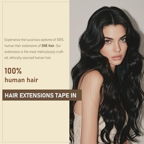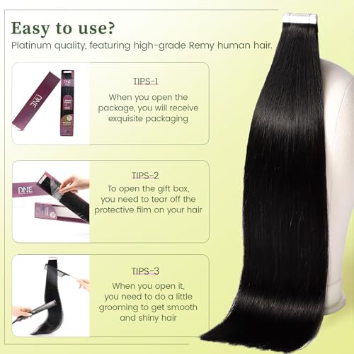 DNE Tape in Hair Extensions Real Human Hair, 24 Inches 20Pcs/50g per Pack Seamless Invisible Double Sided Tape, #1 Jet Black Straight Extensions for Women/Girls,Can Be Bleached & Curled and Dyed