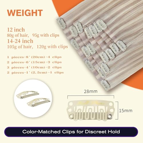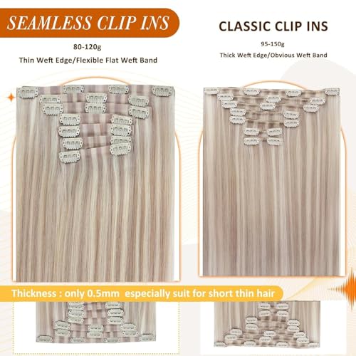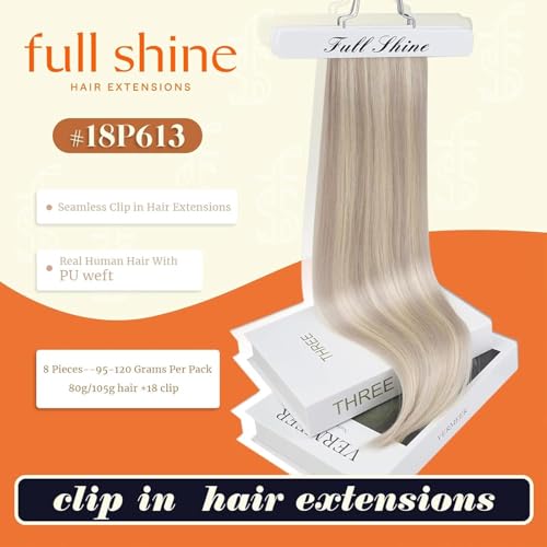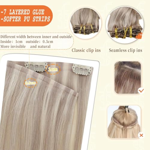 Full Shine Hair Extensions Real Human Hair Clip ins Blonde Hair Extensions Highlight Seamless Clip in Human Hair Extension PU Skin Weft Add Volume 18 Inch 8 PCS 120 G
