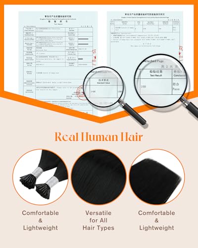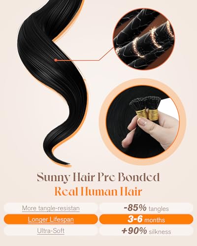 Sunny Hair 22inch 50g I Tips Hair Extensions Human Hair Easy to Maintain Itip Human Hair Extensions Black Itip Remy Extensions for Party