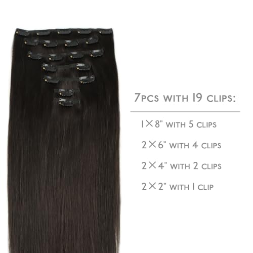 WENNALIFE Clip in Hair Extensions Real Human Hair, 18 Inch 120g 7pcs Human Hair Extensions Clip Ins, Dark Brown Coloured Remy Hair