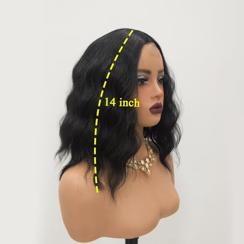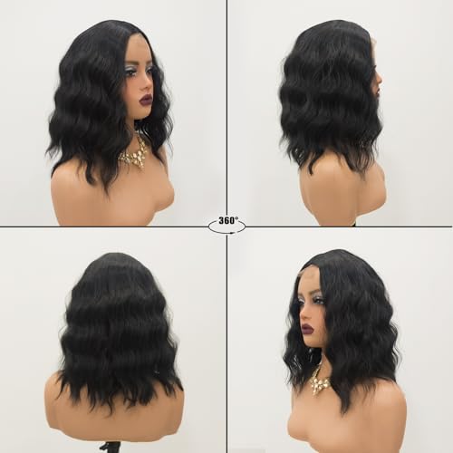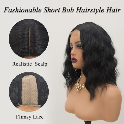 Short Wavy Wigs for Women Lace Front Bob Wigs for Black Women Short Bob Curly Wavy Hair Wigs Synthetic Natural Curly Hair Lace Hairline Wigs for Daily Use. (Natural Black)