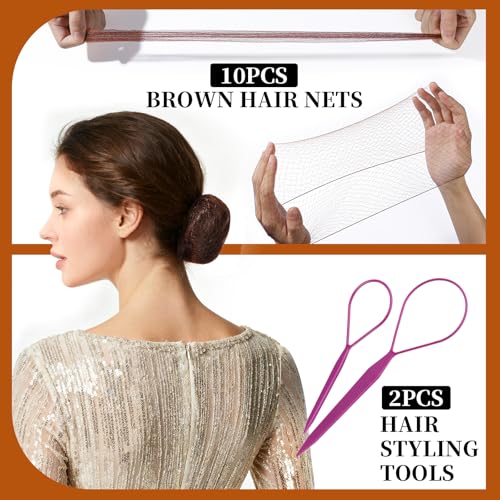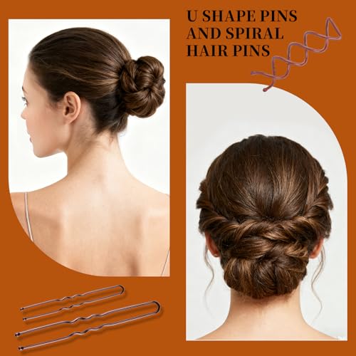 Teenitor Bobby Pins Hair Pins Hair Net Kit, 227 Bobby Pins for Women U Shaped Hair Pins, Hair Nets for Buns Spiral Pins, Hair Ties and 2 Hair Styling Tools for Women Girls Dance Ballet Brown