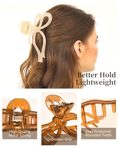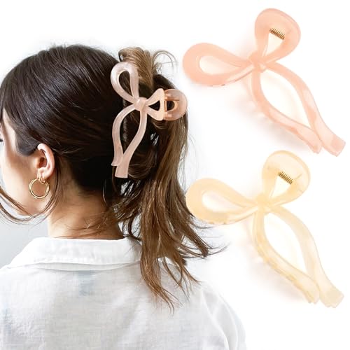 Yanibest Elegant Bow Hair Claw Clips Stylish Large Hair Clips for Thin and Thick Hair | Holiday Gift for Teen Girls | Chic Hair Styling Accessories for Women (Beige/Pink)