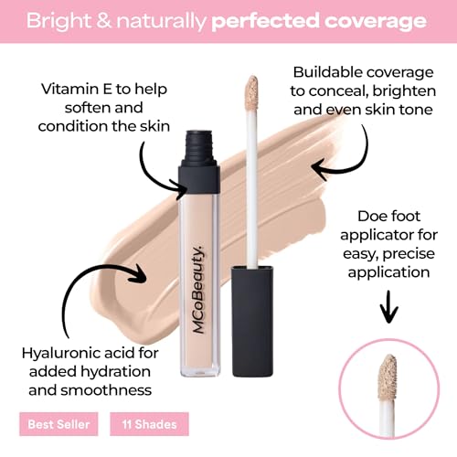 MCoBeauty – Brighten & Perfect Cream Concealer – 2 Light Fair – Hydrating Corrector Medium Coverage Blemish & Under Eye Concealer – With Vitamin E, Hyaluronic Acid & Aloe Vera