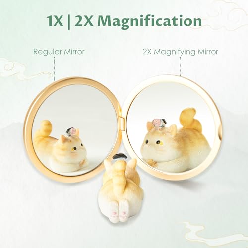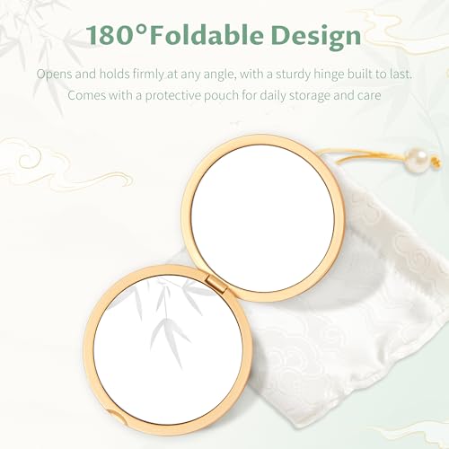 Compact Mirror, Mini Travel Makeup Mirror Small Magnifying Mirror for Purse Bag Pocket, Portable Folding Vanity Mirrors with Cute Storage Pouch