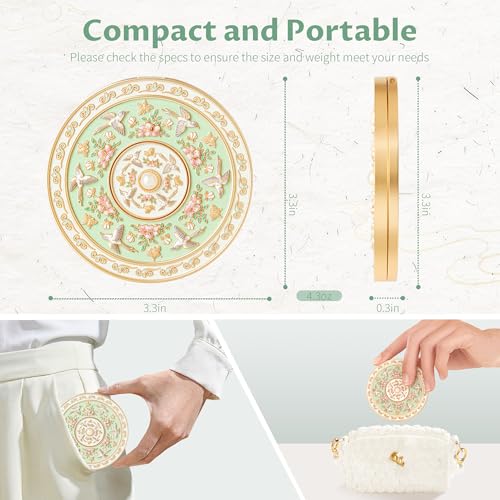 Exquisite Design with Cultural Inspiration: Imperblooms vintage compact mirror is inspired by a Tang Dynasty bronze mirror housed in the Palace Museum, featuring intricate embossed details in vibrant colors. The unique design makes it stand out, easy to spot in your purse, combining beauty with practicality for everyday carry.