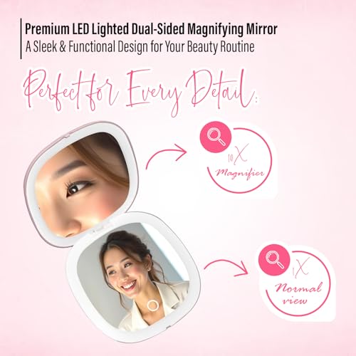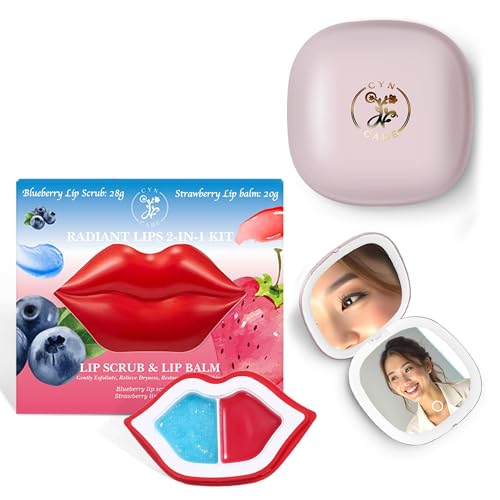 Self Care Kit – LED Compact Mirror with Light with Magnification 1X/10X + 2 in 1 Blueberry Lip Scrub & Strawberry Balm