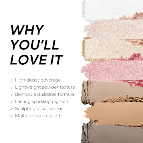 High Glossy Face Highlighter Palette, Luminous Face Illuminator Palette, Natural Glow Finish, Pearl Shimmer Smooth Baked Powder for a Radiant Glow, Lasting Sparkling Highlighter Makeup- SUN GLOW