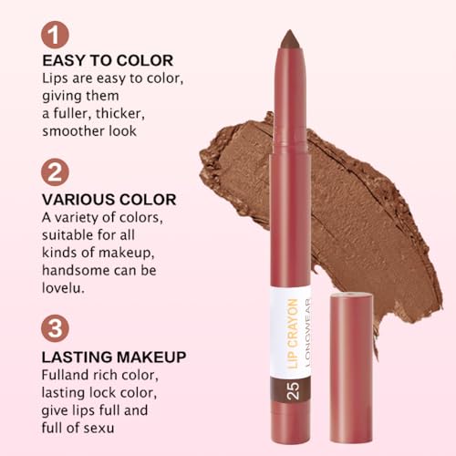 BINGBRUSH Lip Crayons Matte Longwear Lipstick Pack Set,Moisture Smooth Lipliner With Built-in Sharpener Ultimate Lip Crayon for Makeup- Waterproof Velvet Lipgloss Lip Stain(25#Saddle Brown)