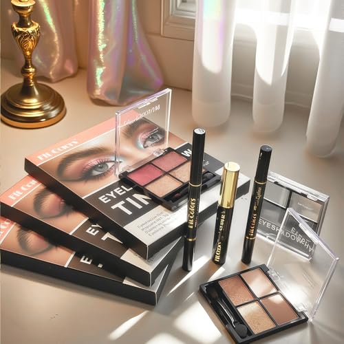4-in-1 Eye Makeup Kit 4-Color Eyeshadow Palette Double-Ended Liquid Eyeliner Volumizing Mascara Eyebrow Pencil & Brush for Daily Makeup(02#)