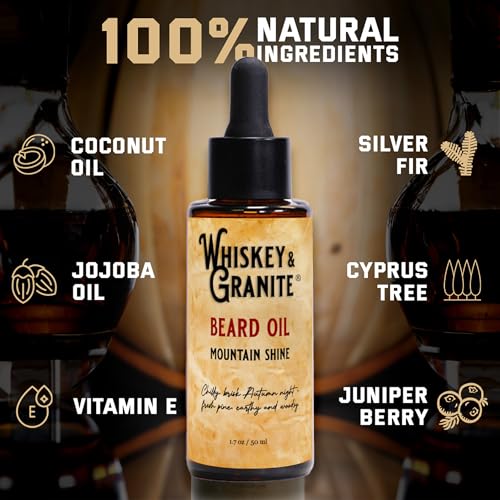 Whiskey & Granite Beard Oil – Made in USA – 100% Natural Beard Conditioner, 1.7 oz (Mountain Shine)