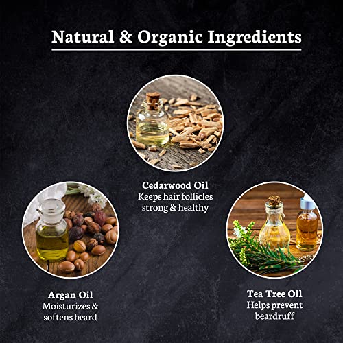 Beard Growth Oil for Men with Cedarwood and Tea Tree Oil – Easy Beard Dispenser and Pump for Mens Beard Care – Sulfate Free Beard Softener – Thickening Beard Exfoliator for Men (2oz)
