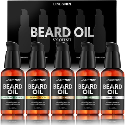 Deluxe Beard Oil for Men – Sandalwood, Tobacco Vanilla, Bergamot Sage, Cedar Pine, Unscented Fragrances, Natural Mens Beard Oil Kit With Argan & Jojoba Oil, Beard Softener Grooming Mens Beard Care