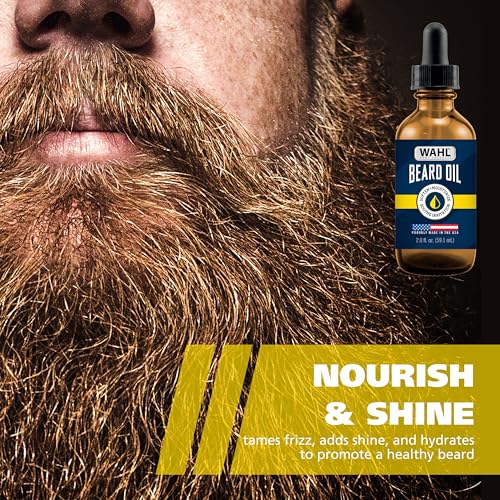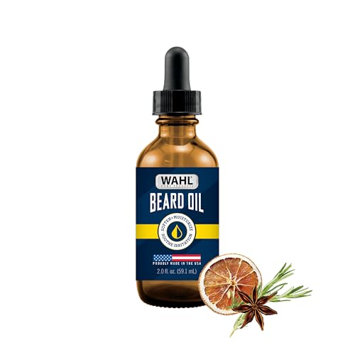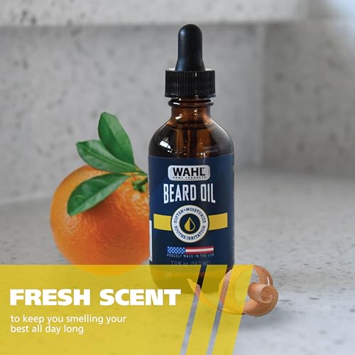 Wahl® Beard Oil for Men – Softens & Moisturizes Beard Hair, Soothes Skin Irritation – Contains Sweet Almond, Oat Kernel & Cinnamon Oils – Fresh Citrus Scent, 2.0 Fl Oz – Model 3028692