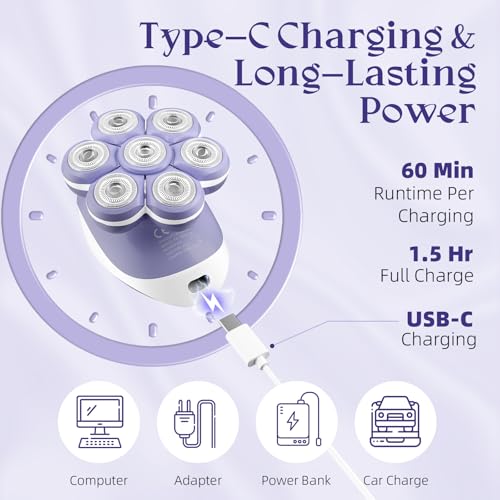 7D Electric Razors for Women: Fast & Smooth Full-Area Electric Shaver for Women Flawless Legs – Waterproof Body Hair Remover for Wet Dry Use, LED Light & Travel Cover – Gifts for Ladies Her