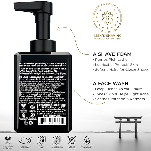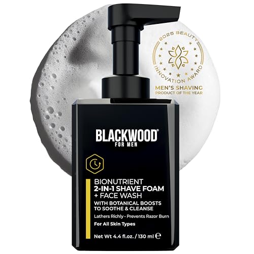 Blackwood For Men BioNutrient 2-in-1 Shave Foam + Face Wash, Natural Rich Shaving Foam & Facial Cleanser Hybrid, Soothes Irritation, Prevents Razor Burn, Fights Acne, Sulfate-Free True Clean Shave 4oz