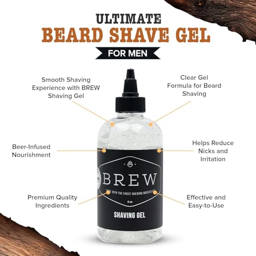 Beard Shave Gel – Clear Shaving Gel for Beards – Nutrient-Rich Formula – Provides Smooth Shave – Premium Ingredients – Hops, Barley, Yeast – 8 oz.