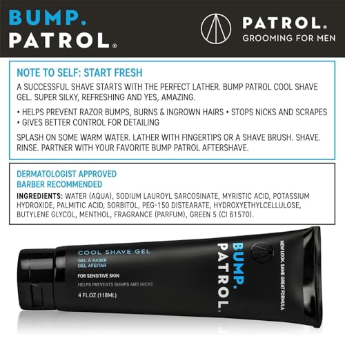 Bump Patrol Cool Shave Gel – Sensitive Clear Shaving Gel With Menthol Prevents Razor Burn, Bumps, Ingrown Hair – 4 Ounces