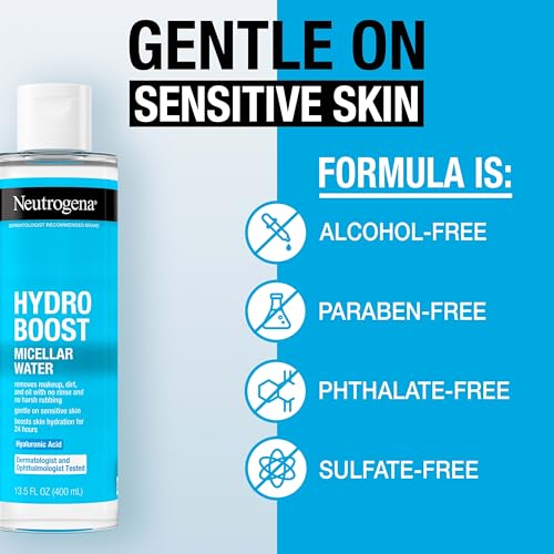 Neutrogena Hydro Boost Micellar Water with Hyaluronic Acid, Micellar Cleansing Water for Sensitive Skin, Removes Makeup, Dirt & Oil, Alcohol-Free, 13.5 fl oz