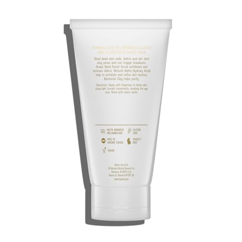 Hylunia Skincare Grape Seed Facial Scrub – Gentle Exfoliating Face Scrub with Ground Grape Seed, Bentonite Clay, and Alpha Hydroxy Acid for smooth, glowing skin and refined pores, 5.1oz