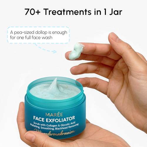 MAREE Face Exfoliator – Microdermabrasion Facial Scrub & Exfoliating Face Wash for Women – Collagen & Glycolic Acid – Gentle Scrub and Exfoliant – Men Exfoliating Scrubber – Exfoliante Facial Cleanser