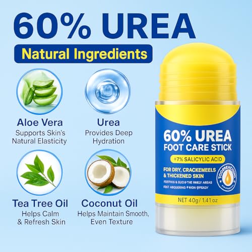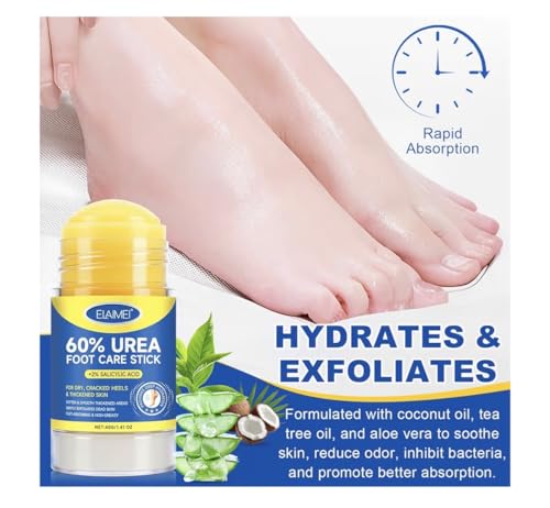 60% Urea Cream with 2% Salicylic Acid Urea Foot Care Stick, Foot Cream Moisturizer for Dry Cracked Feet, Knees, Elbows, Hands,Moisturizes and Hydrates Dry Skin,Callus Remover & Skin Softener -1.41oz