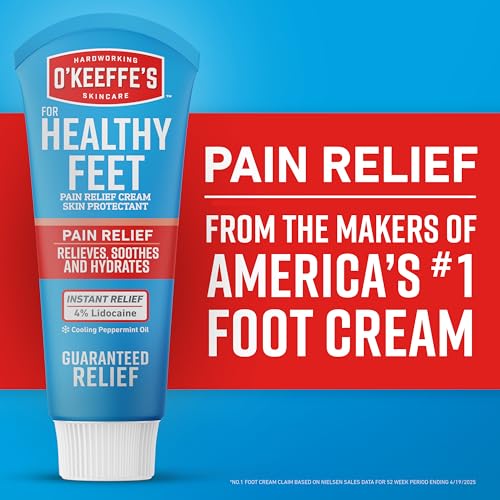 When your hardworking feet need a break, O’Keeffe’s for Healthy Feet Pain Relief cream provides instant relief with a medicated formula containing 4% lidocane.