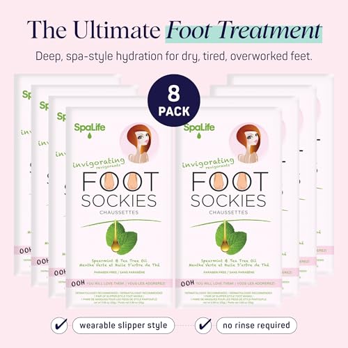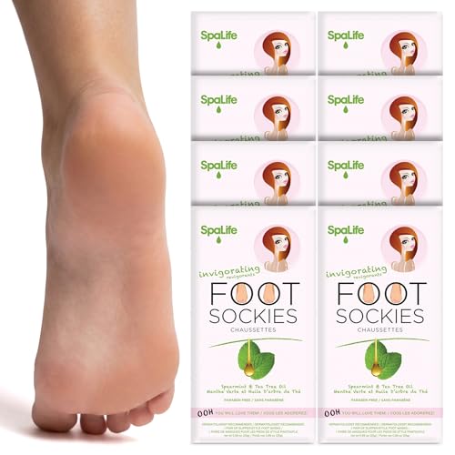 SpaLife Moisturizing Foot Sockies 8 Pairs | Foot Mask for Dry Cracked Feet Intensive Repair Treatment | Tea Tree Oil Softening Booties | Callus Remover Alternative | Self Care Gifts for Women