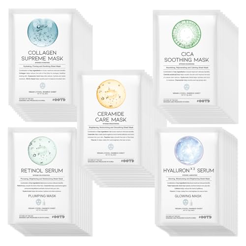 50Combo Korean Face Sheet Mask Gift Pack, Hydrating, Calming, Brightening, Smooting, Rejuvenating, EVE Vegan, Cica, Hyaluron, Retinol, Ceramide, Collagen