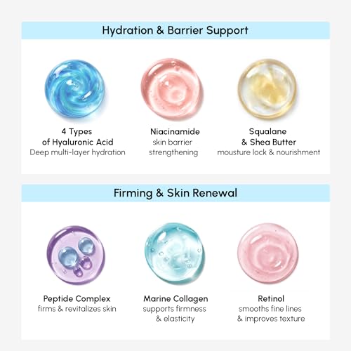 MAREE Face Moisturizer – Firming & Lifting Face Cream for Women with Collagen, Retinol & Hyaluronic Acid – Day & Night Anti-Aging Facial Wrinkle DD Cream Moisturizer for Dry Skin – Crema Para la Cara