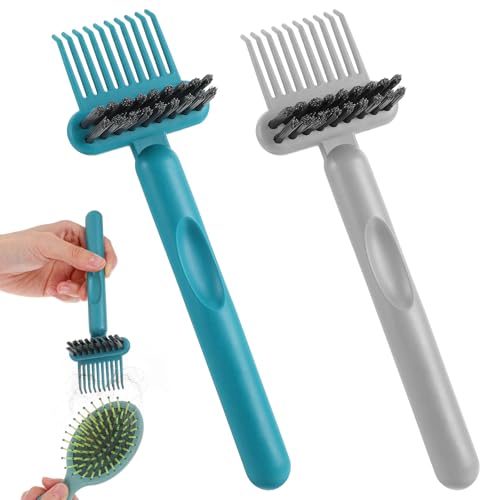 2 Pack 2-in-1 Hair Brush Cleaner, Comb Remover Tool, hair brush cleaner tool brush cleaner tool for Home, Salon Removal Hair Dust (Gray, Dark Green) (Gray, Dark green)