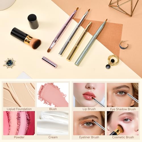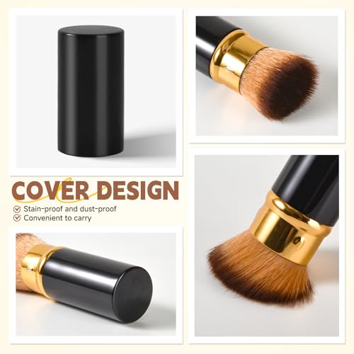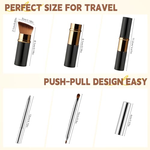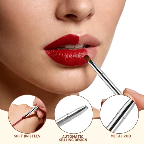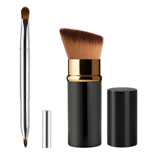 Lip Brush Kabuki Makeup Brush Set, Dual-ended Lip Brushes for Lipstick + All-in-One Foundation Kabuki Brush, Retractable Makeup Brush with Cover for Lip Gloss, Powder Blush, Flawless Cosmetics(Silver)