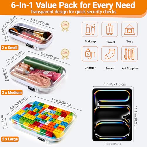 Multi-Purpose for Every Lifestyle: With six cases at your disposal, the possibilities are truly endless! Use them as hard sided creative journaling cases, clear makeup organizers, travel toiletry bags, cases and accessories, or organizers for all your tech gadgets. An essential for travelers, families, and anyone who loves to be organized.