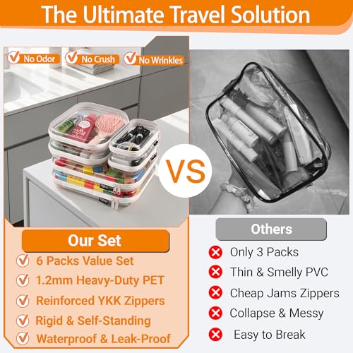 See-Through for Effortless Access: The crystal-clear design allows you to instantly see what’s inside each of your six cases without opening them. Save time and hassle, especially when going through security checks or searching for a specific item in your bag.