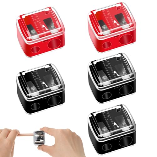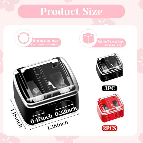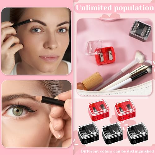 Packing List: You will receive 5 pieces of multi color compact makeup pencil sharpeners include 3 pack black, 2 pack red with removable transparent cover, which helps you clean easily and allows you to clearly see your sharpening situation. It is a very practical one for your daily use